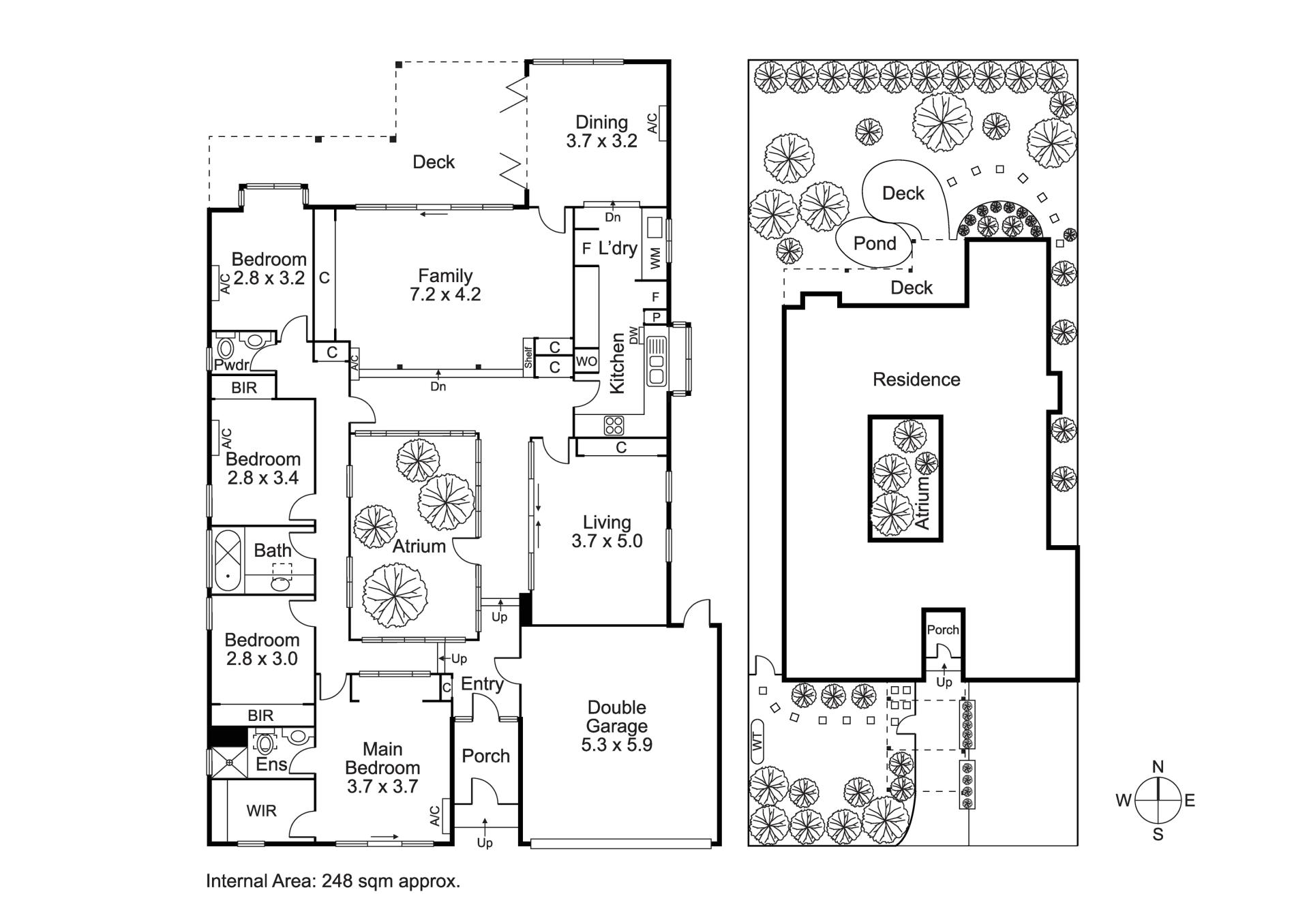 • Sunken garden-view lounge, formal dining and relaxed meals area with deck access