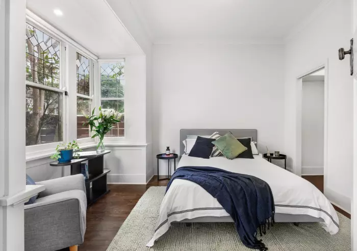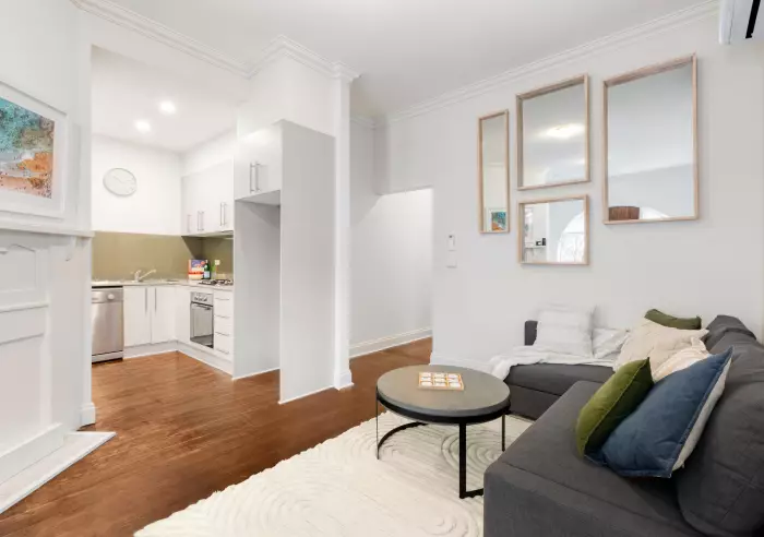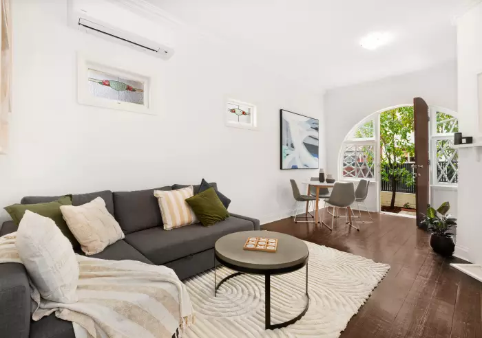 Set behind a privately gated entrance which leads to only two apartments, this stylish residence is comfortably proportioned with a light filled open-plan living and dining area with updated stone kitchen, gas appliances and dishwasher.  The generously sized master bedroom boasts a beautiful courtyard view through the period style windows and includes a sought-after walk-in robe. The second bedroom is in a secluded position at the rear of the property and is also generous in size.  Completing this wonderful apartment, you will be delighted with the contemporary bathroom, separate laundry, high ceilings, solid timber floors, and a private garden courtyard.