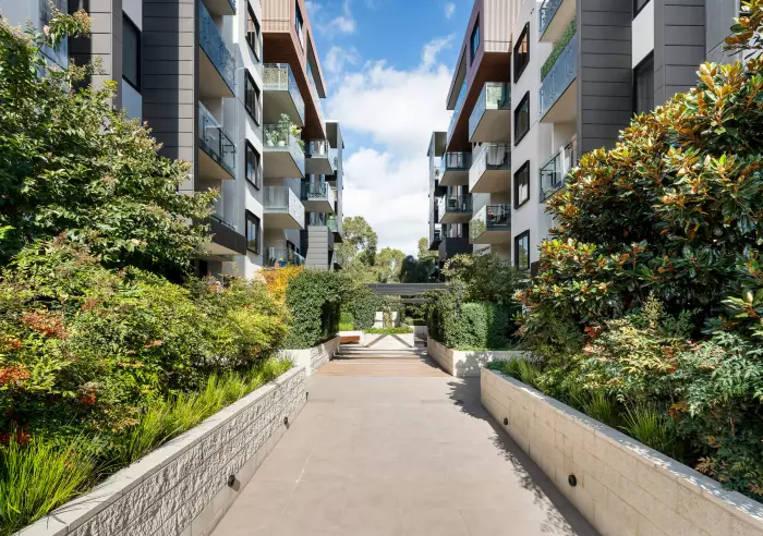 Situated on the second floor and exceptionally private, the easy-care haven includes an open plan living/dining zone and sleek Asko-equipped kitchen, as well as a sheltered alfresco terrace for seamless indoor/outdoor enjoyment.