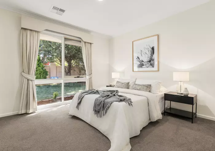 With garden-views, the main bedroom is a welcoming retreat that benefits from a stretch of fitted wardrobes and direct access to the sparkling two-way bathroom complete with bath - ideal for young families. A second double bedroom (robes) is also offered plus the convenience of a separate WC, while a neat laundry and ducted heating & cooling conclude the interiors. Wrapping up a low maintenance charmer is brilliant secure undercover storage and carport parking behind a secure gate.