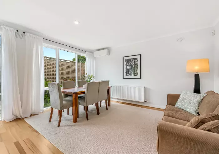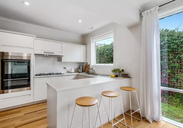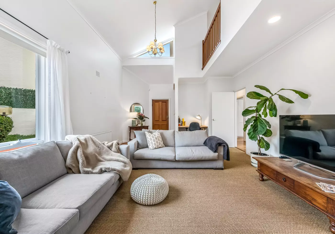 This elegant and pristine property offers a wonderful opportunity for easy living on the edge of Church Street. Located in a tightly held and beautifully maintained complex, the sun-drenched interior soars high with vaulted ceilings upon entry, creating a sensational sense of space and light. A free flowing & flexible design connects the generous and stunning formal lounge with the north-west facing casual meals and living area. The updated kitchen is well appointed with gas cooktop, wall oven, dishwasher and extensive storage. Completing the ground level is a separate powder room & full-size laundry with external access to the rear yard.