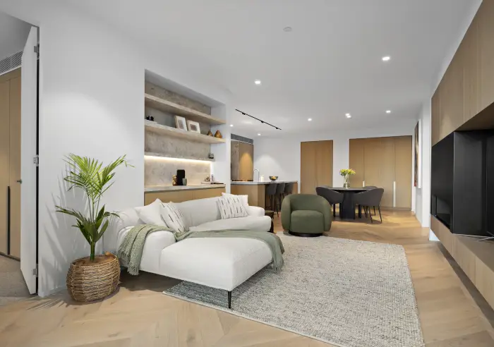 Perfectly positioned just a five-minute walk from the Golden Mile beaches, Bay Street’s shopping and dining precinct, and North Brighton Station, the building is also home to the newly opened Baix fine-dining restaurant and wine bar by acclaimed chef Ian Curley—further elevating the appeal of this exclusive, five-star, boutique hotel-inspired address.