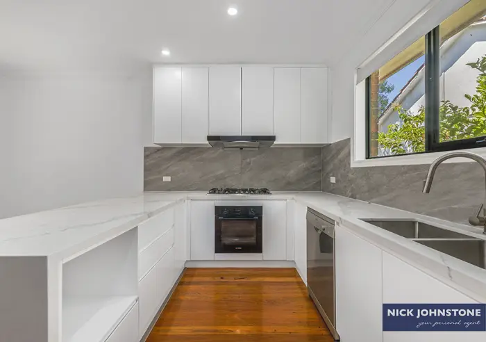 Showcasing north-facing open-plan living, the light-filled interiors flow seamlessly to a sunny private courtyard, with stylish finishes of stone, timber and glass creating a modern, welcoming feel. The spotless kitchen and living zone enjoys a beautiful northern outlook and features a sleek new gourmet kitchen with ample cabinetry.