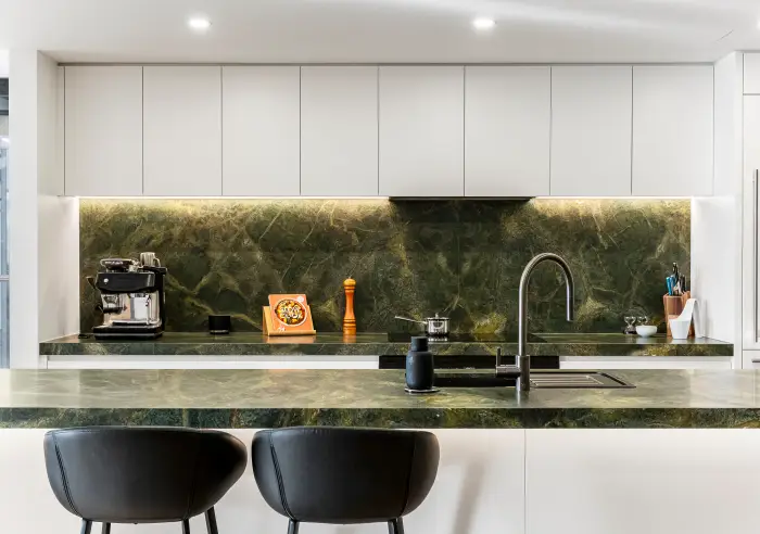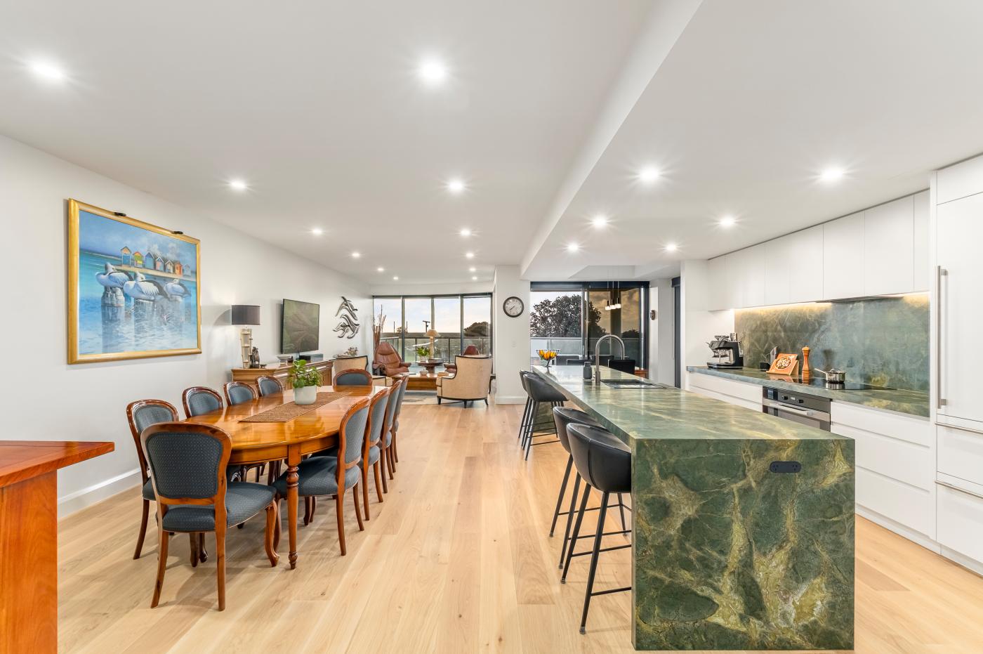 This remarkable waterfront residence captures the beauty of its surroundings at every turn—where shifting sunsets, cooling sea breezes and distant city lights create a constantly evolving coastal backdrop. Set across a prized half-floor with a sought-after north-west orientation, it enjoys exceptional natural light and sweeping outlooks across Green Point and the shimmering bay beyond.